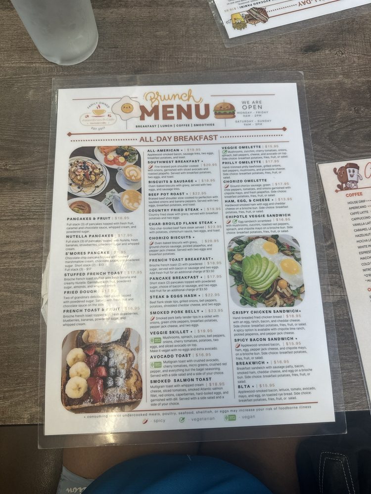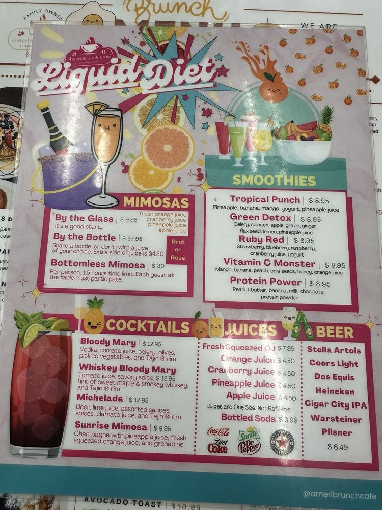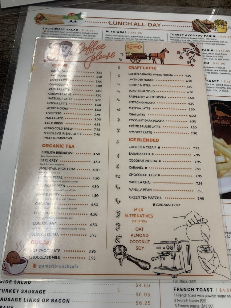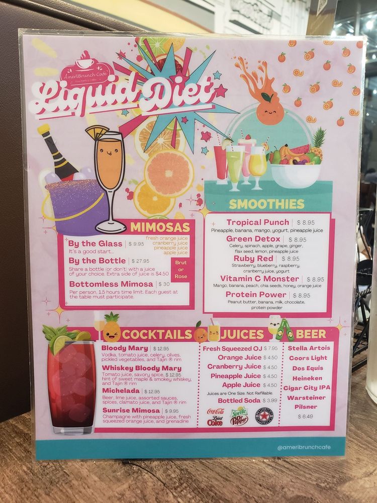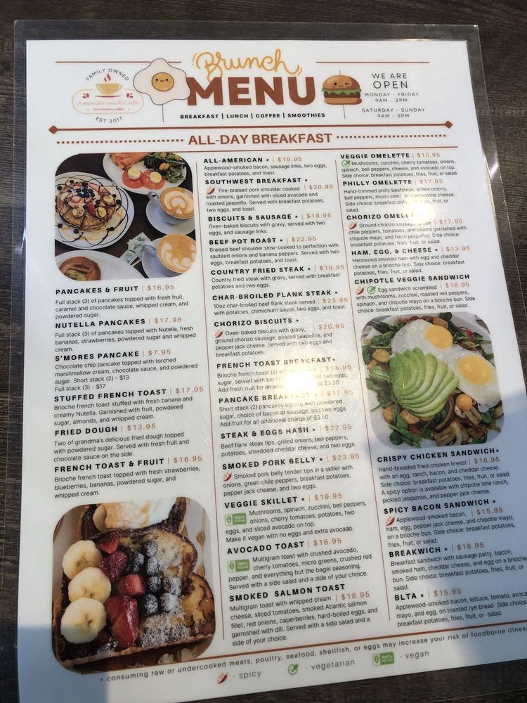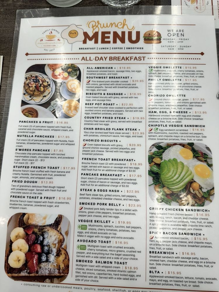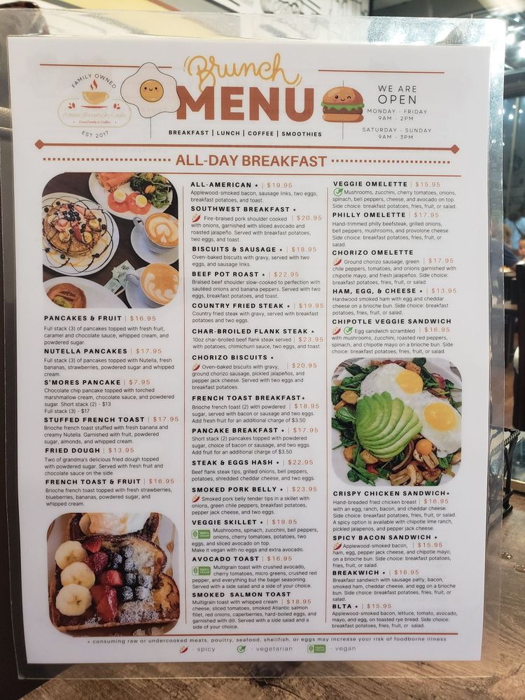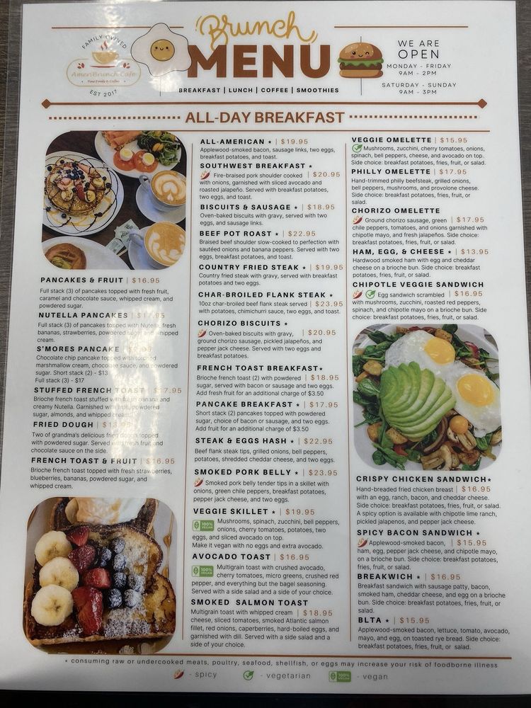 Introducing the menu at AmeriBrunch Cafe, a trendy and casual American eatery in Las Vegas, offering a variety of breakfast, brunch, and lunch options. Start your day with dishes like All-American Breakfast, Avocado Toast, or Pancakes & Fruit. For lunch, enjoy the Angus Burger, Bacon Mac & Cheese, or Chicken Pesto Panini. Customers rave about the tasty food and excellent service, with highlights including the Chorizo Omelette, Veggie Hash, and French Toast. The cafe also caters to diverse dietary needs with vegan options and offers amenities like delivery, outdoor seating, and free Wi-Fi. With positive reviews praising the quality of the food and friendly atmosphere, AmeriBrunch Cafe is a must-visit spot for a satisfying meal in a lively setting.